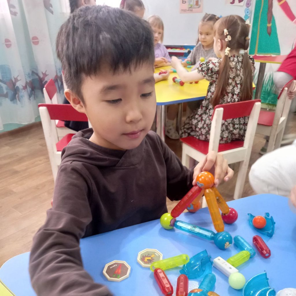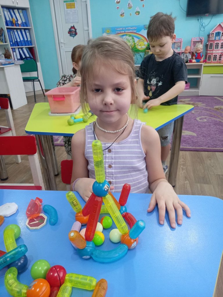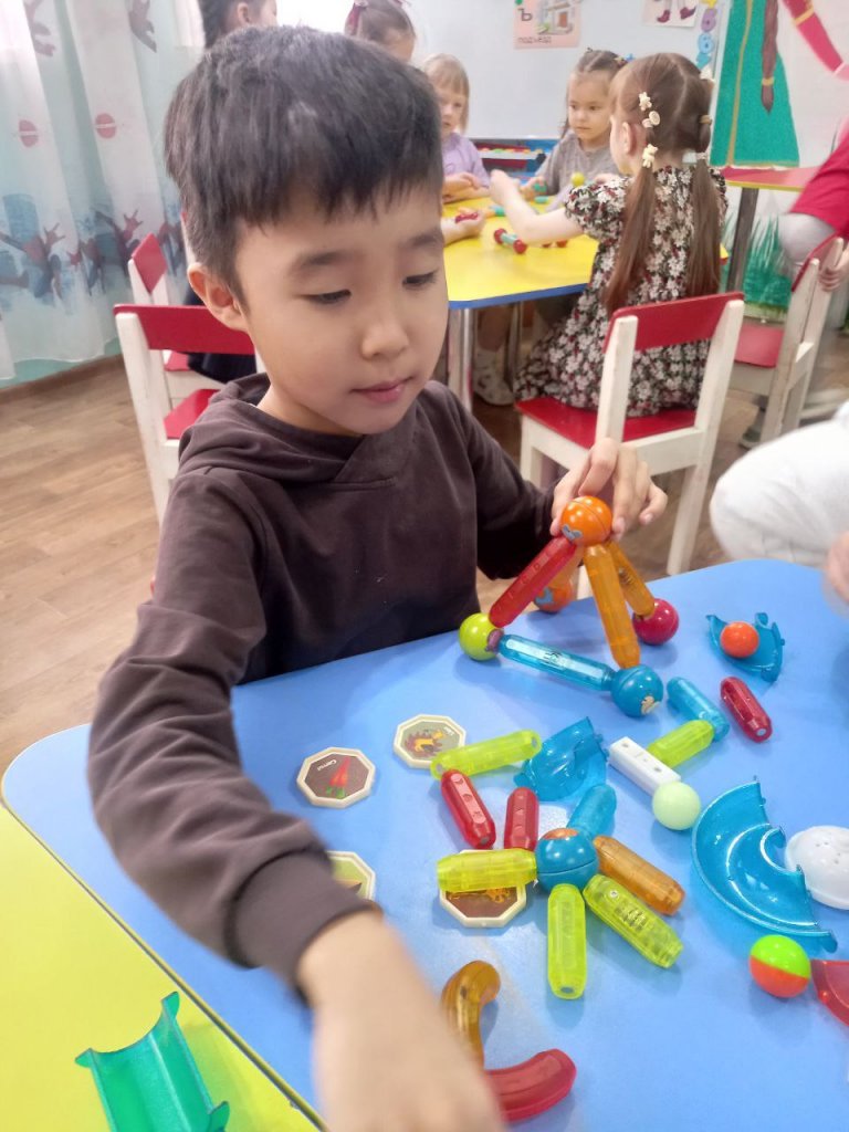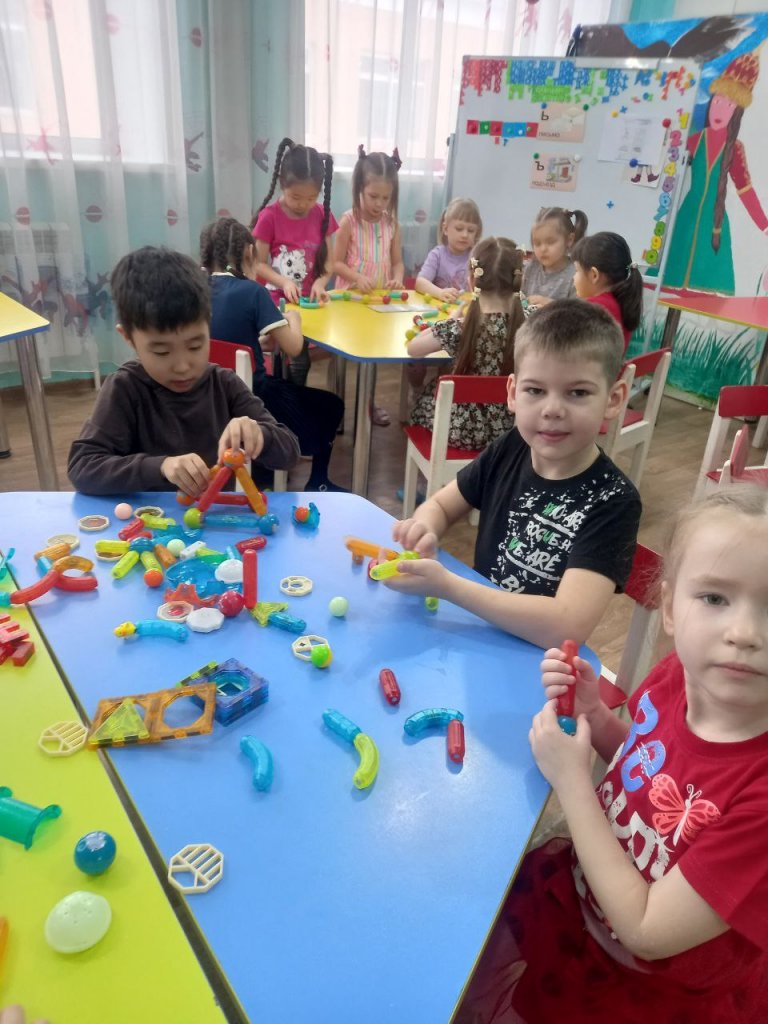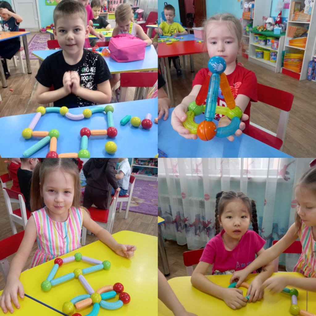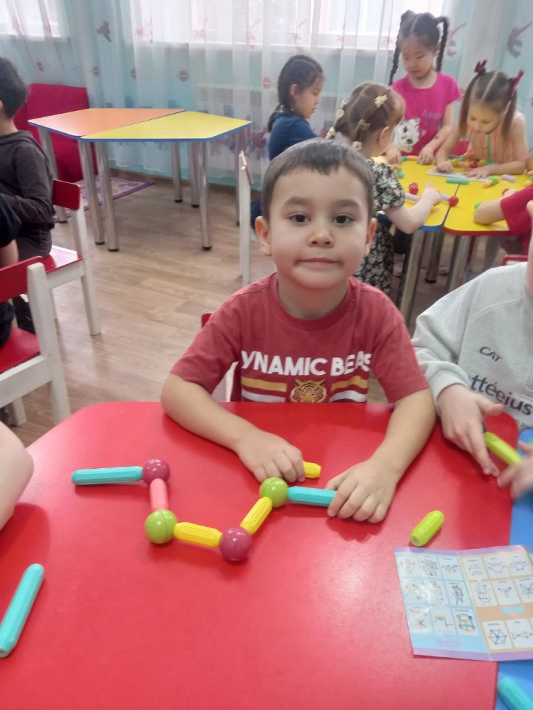 Іс-әрекет барысында балалар магниттің қасиеттерімен танысып, тәжірибе жасап, бақылау жүргізді. Олар ойын арқылы магниттің мүмкіндіктерін зерттеп, өз қиялдарын жүзеге асырып, танымдық әрекетке белсенді қатысты.